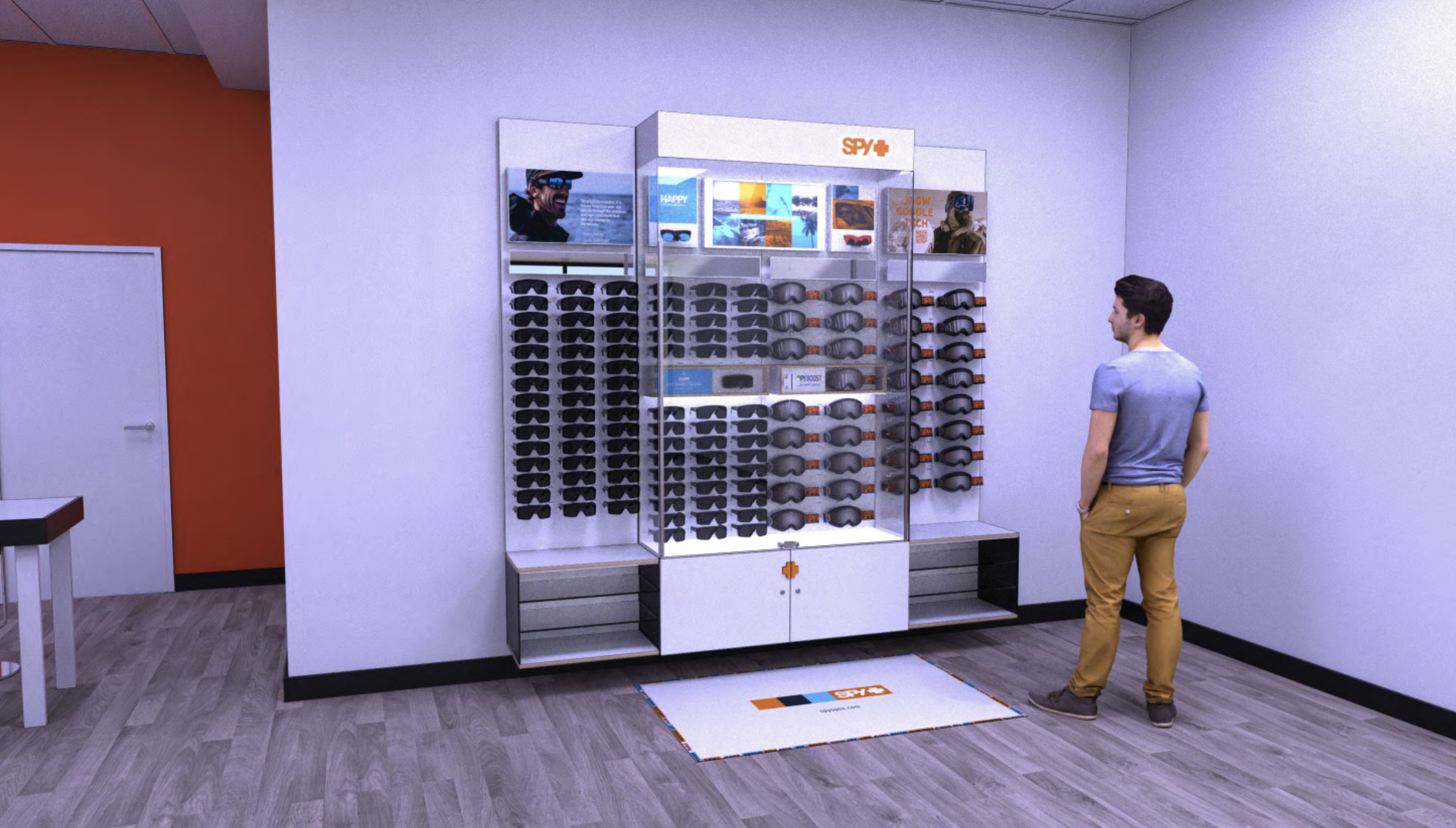 CHALLENGEDesign a secure retail display that showcases SPY+ eyewear in a way that feels open, bright, and premium.